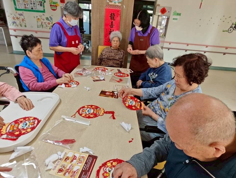 除夕當天,各單元區辦理春節手作活動,由工作人員陪伴長輩親手製作不織布馬年掛飾,長輩們細心完成屬於自己新年作品,展現滿滿成就感與自信心。