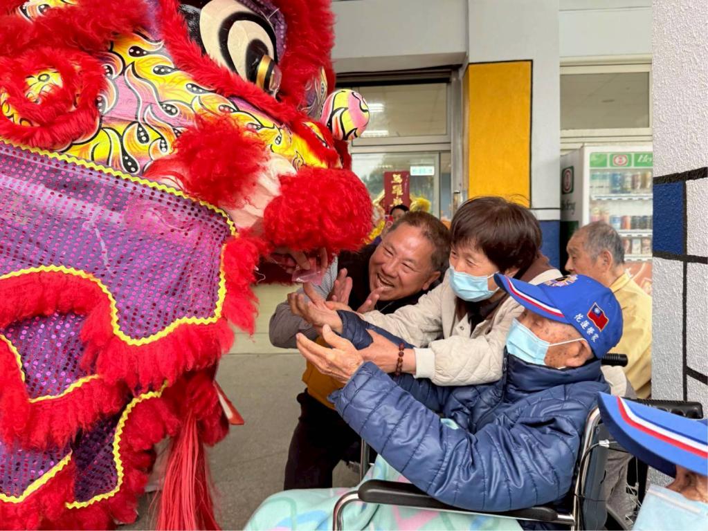 活動中,醒獅團更與高齡106歲榮民李志元伯伯親切互動,伯伯笑得闔不攏嘴,現場掌聲與歡笑聲此起彼落,洋溢著溫馨與感動,為新春佳節留下難忘而美好回憶。