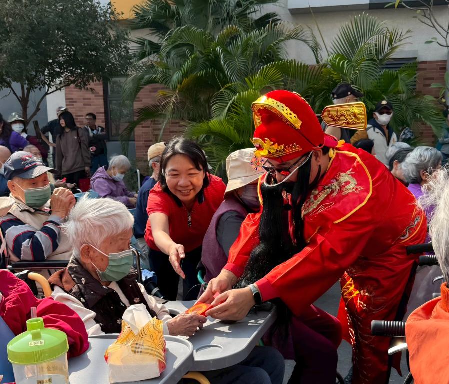 隨後,首長親自走訪各堂,逐床向臥床、輪椅及使用助行器長輩親切問候,送上新年福袋與小禮包,細心傳遞祝福與關懷,讓每位住民都能感受到被重視、被疼惜的溫暖。
