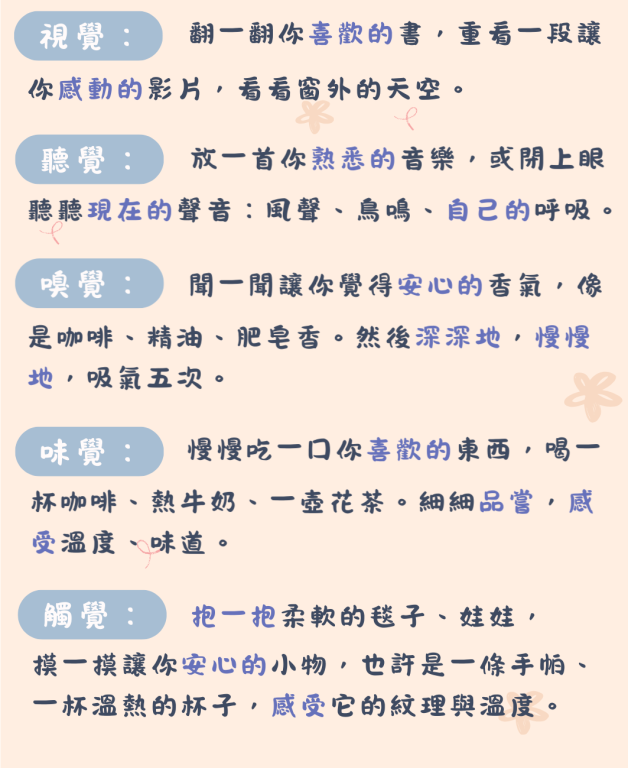 衛生局表示,「1925」安心專線由受過專業訓練的人員接聽,透過傾聽與陪伴,協助來電者梳理情緒、舒緩壓力,必要時也會提供相關資源轉介。市府同時呼籲市民在關照自身身心健康的同時,也多留意身邊親友一句問候或關心的話語,都可能成為他人度過低潮的重要力量。為方便市民,衛生局製作「安心小卡」,提供安心專線資訊,並藉由視、聽、味、觸、嗅五感,幫助舒緩心情,安心隨行。
