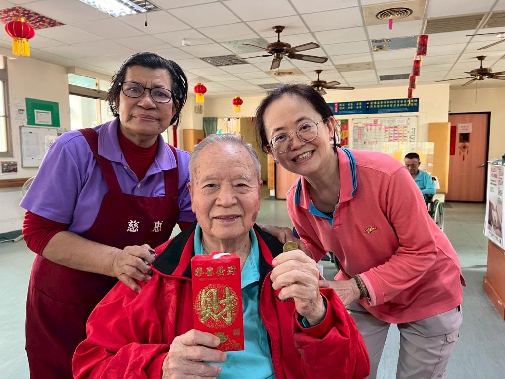 緊接著登場的是「新春抽抽樂」活動,紅通通紅包牆高掛著各式吉祥祝賀詞,長輩們依序抽取屬於自己幸運紅包,裡頭藏著小禮品與驚喜祝福;有人抽中「健康平安」、有人抽到「財源廣進」,還有長輩笑著分享:「今年一定鴻運當頭!」溫馨又逗趣互動,讓彼此情感更加緊密。