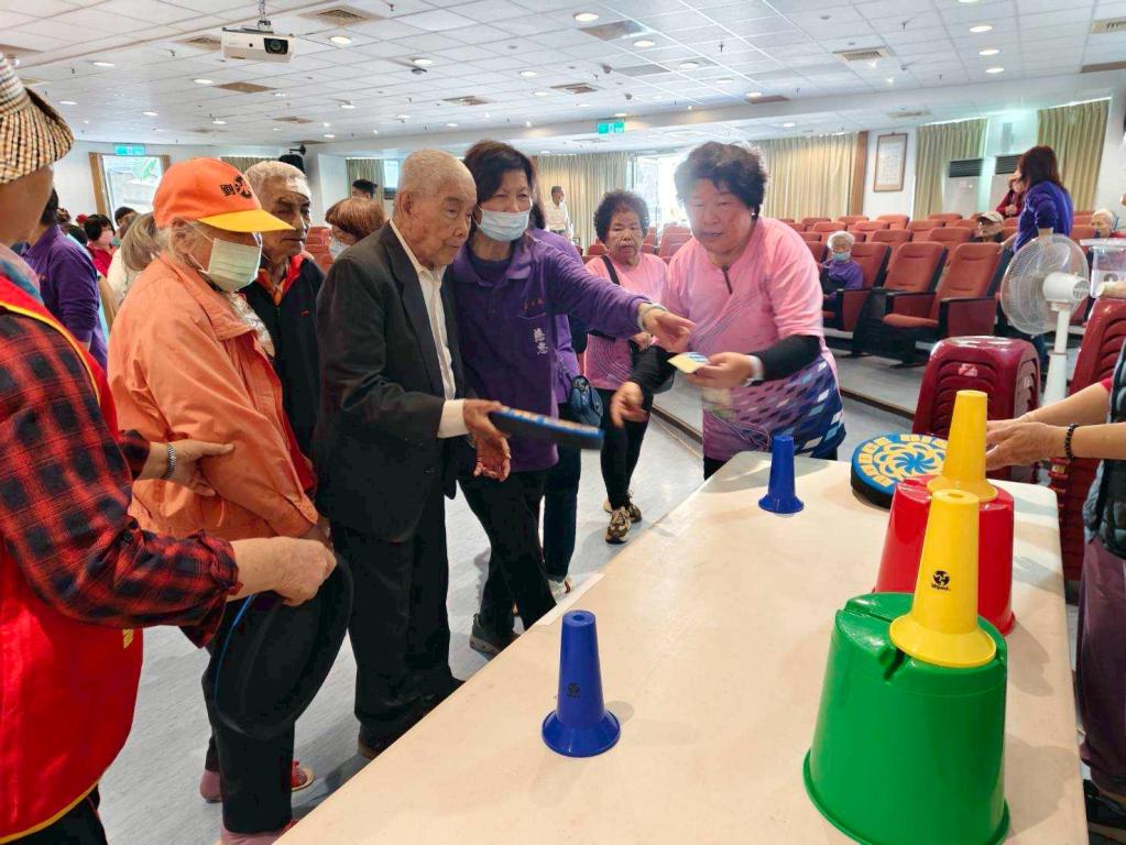 榮家說明,本次闖關內容包含「安全飛盤互動」、「我的餐盤球型飛鏢投擲」、「芬蘭木柱」、「造型帽子氣球」及「丟沙包」等5大關卡,內容豐富多元,兼顧肢體活動與腦力刺激,參與長輩在志工陪伴下熱情投入,展現滿滿活力與自信。