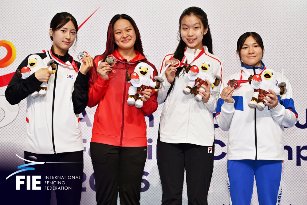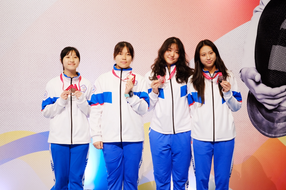 ▲2026年亞洲青年暨青少年擊劍錦標賽青少年女銳團體銅牌。圖左起:徐友嫻、楊昀臻、張恩瑜、林雨潔。(圖/中華民國擊劍協會提供)