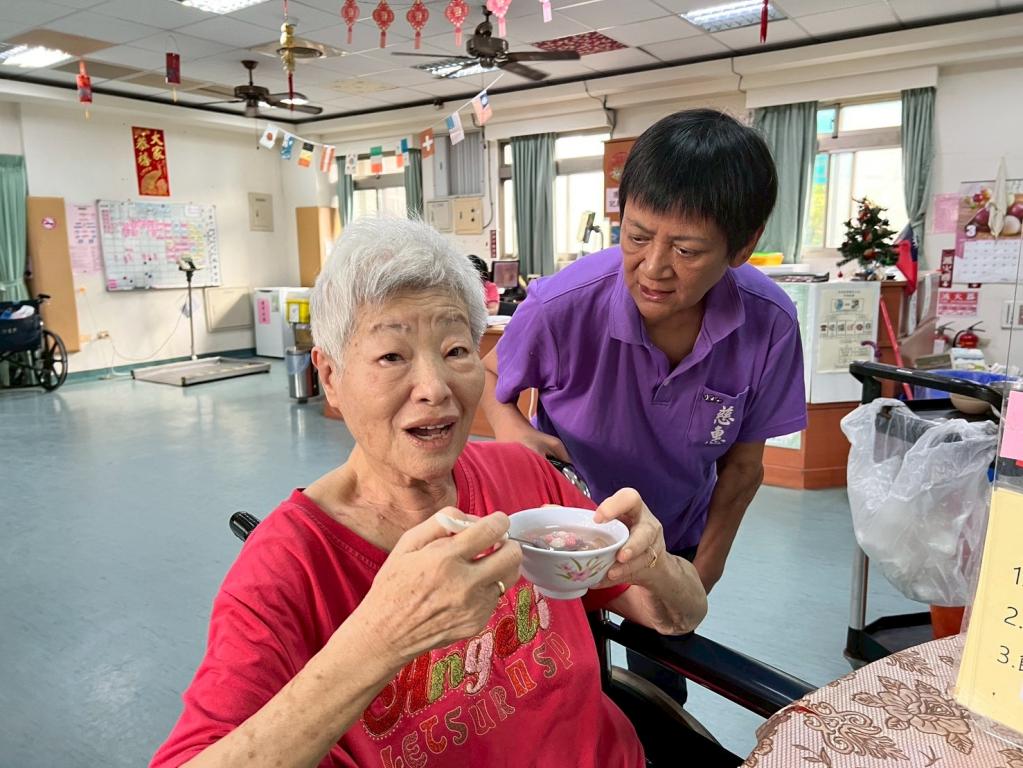 活動開始,香氣四溢熱騰騰湯圓端上桌,象徵團圓圓滿、幸福甜蜜;長輩們一邊品嚐軟Q香甜湯圓,一邊話家常,笑容如春日暖陽般燦爛。