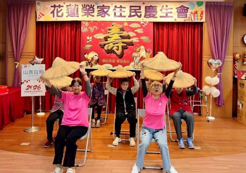 活動開場由花蓮榮家日照中心長輩帶來兩首歌舞表演《農村曲》及《日不落》,長輩們精神抖擻、舞步輕快,展現活力與自信,為慶生會揭開熱鬧序幕。