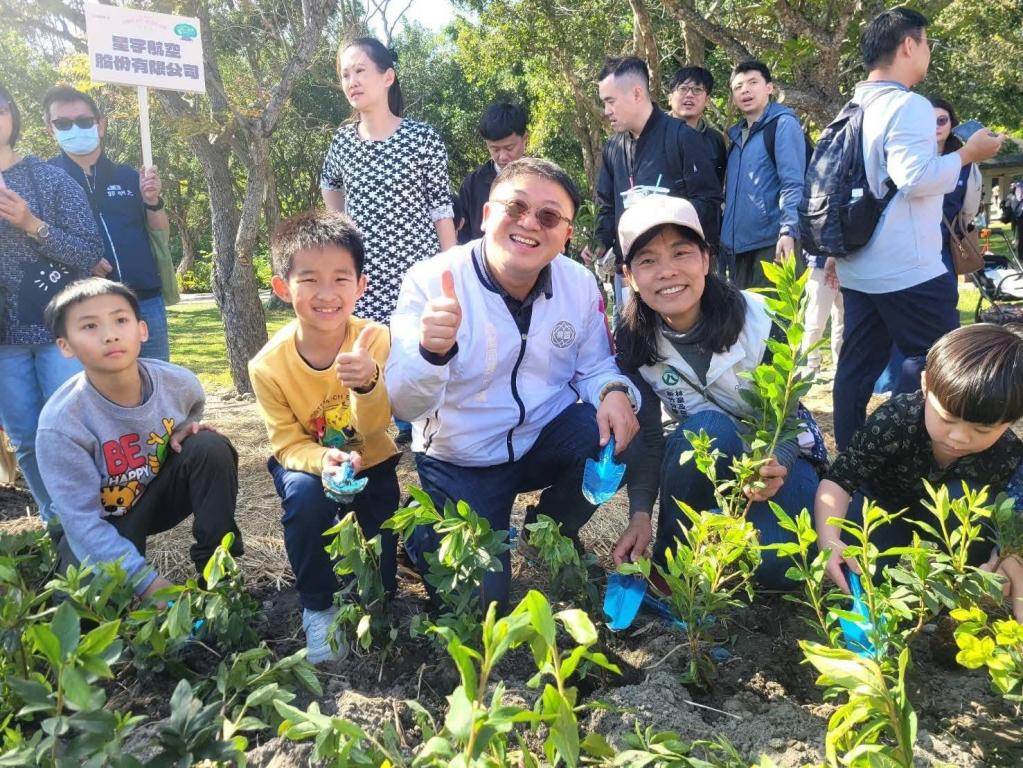 張善政市長表示,植樹是關心環境的開始,當人們親手種下樹木後,往往會開始關注樹木的生長與周遭生態,進而培養守護自然環境的意識。樹木不僅具有綠化環境的功能,同時也是重要的碳匯資源。當林木生長到一定樹齡後,透過適當的林業經營與更新,可讓森林持續維持良好的固碳能力,並將木材轉化為各類產品加以利用。因此,市府也積極推動國產材利用,也鼓勵更多公共設施與生活用品採用國產木材,讓森林資源形成永續循環。