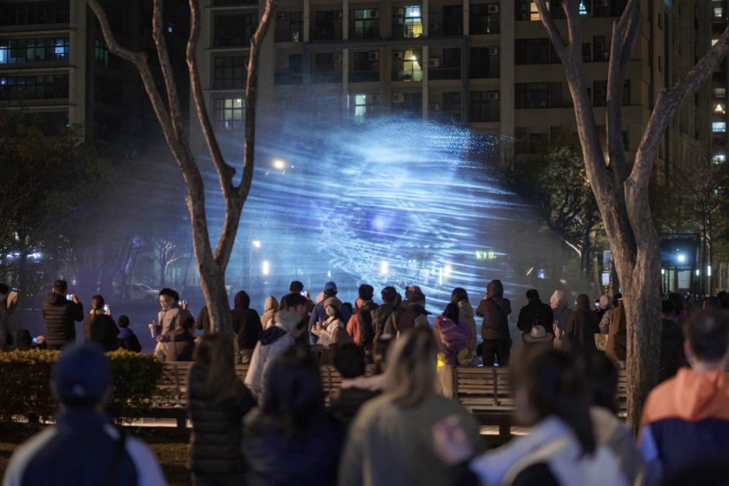 鄭朝方指出,今年光節在策展思維上持續突破,首度引入科技水幕作品「光築吟風」,打破傳統實體燈組框架,透過光影與水霧的結合,在空間中呈現虛實交錯的動態視覺效果。展演期間,每逢水幕啟動時刻,現場民眾紛紛駐足觀賞,驚嘆聲不斷,成功將科技元素轉化為可親近的公共藝術體驗。