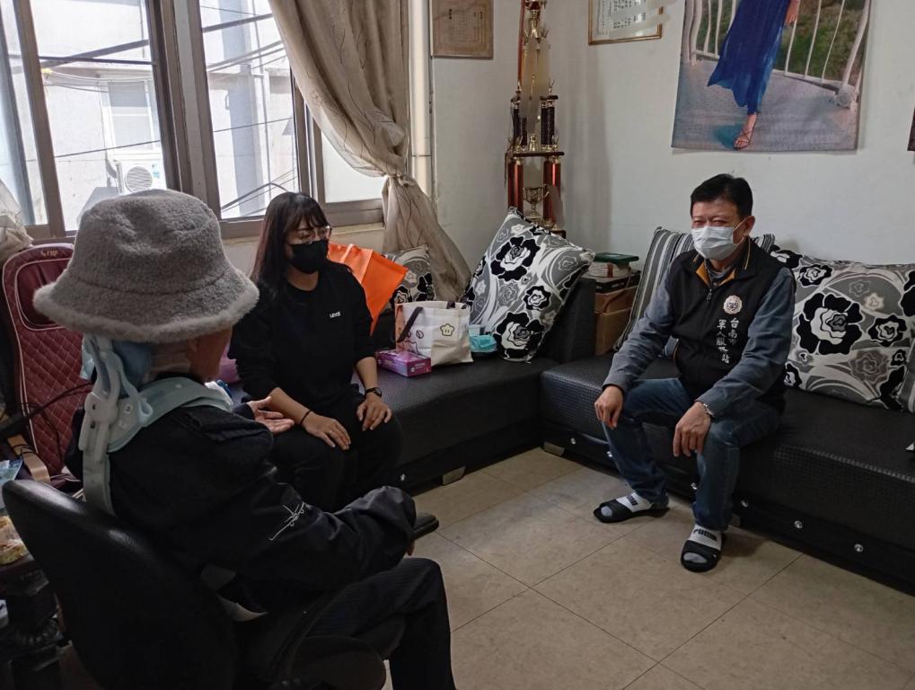 【勁報記者于郁金/臺南報導】台南市軍人服務站接獲空軍第一聯隊林姓上士母親於日前因車禍住院,協請慰問案。服務站表示,本站聞訊後,由站長劉可雲代表軍友社黃理事長及簡秘書長前往林府關懷,並致贈慰問金,盼望母親早日康復,場面溫馨。