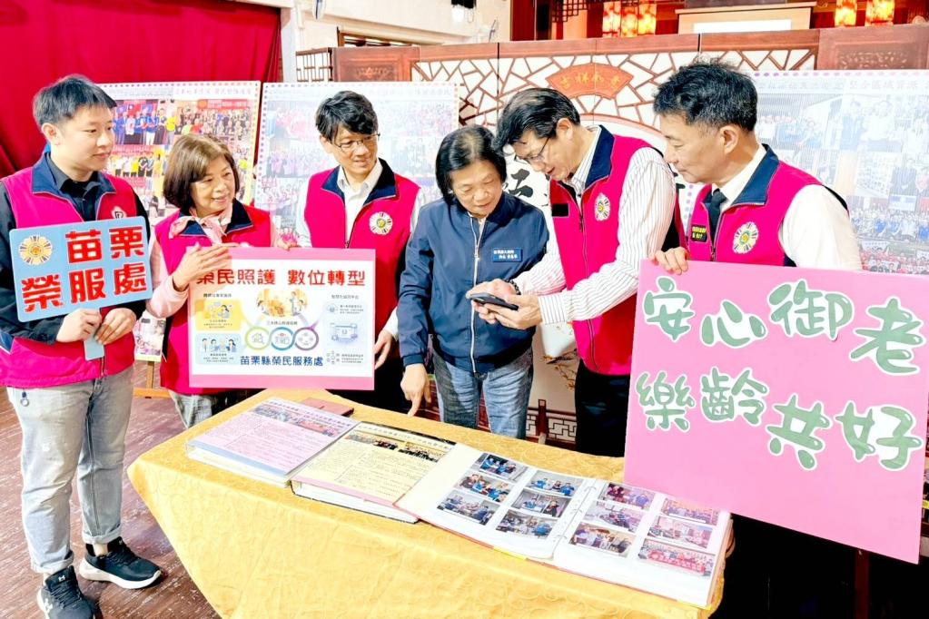 【勁報/苗栗報導】苗栗榮民服務處為感謝大湖鄉長黃惠琴長期支持榮欣志工隊推展服務照顧工作,邀請共同參與榮服處志工活動,處長陳立中偕同副處長柯長榮、總幹事王國良及服務同仁,運用相簿、看板向黃鄉長說明榮民眷服務照顧紀實成果,由副處長操作安心御老APP,說明服務人員訪視關懷與平台即時回報機制。