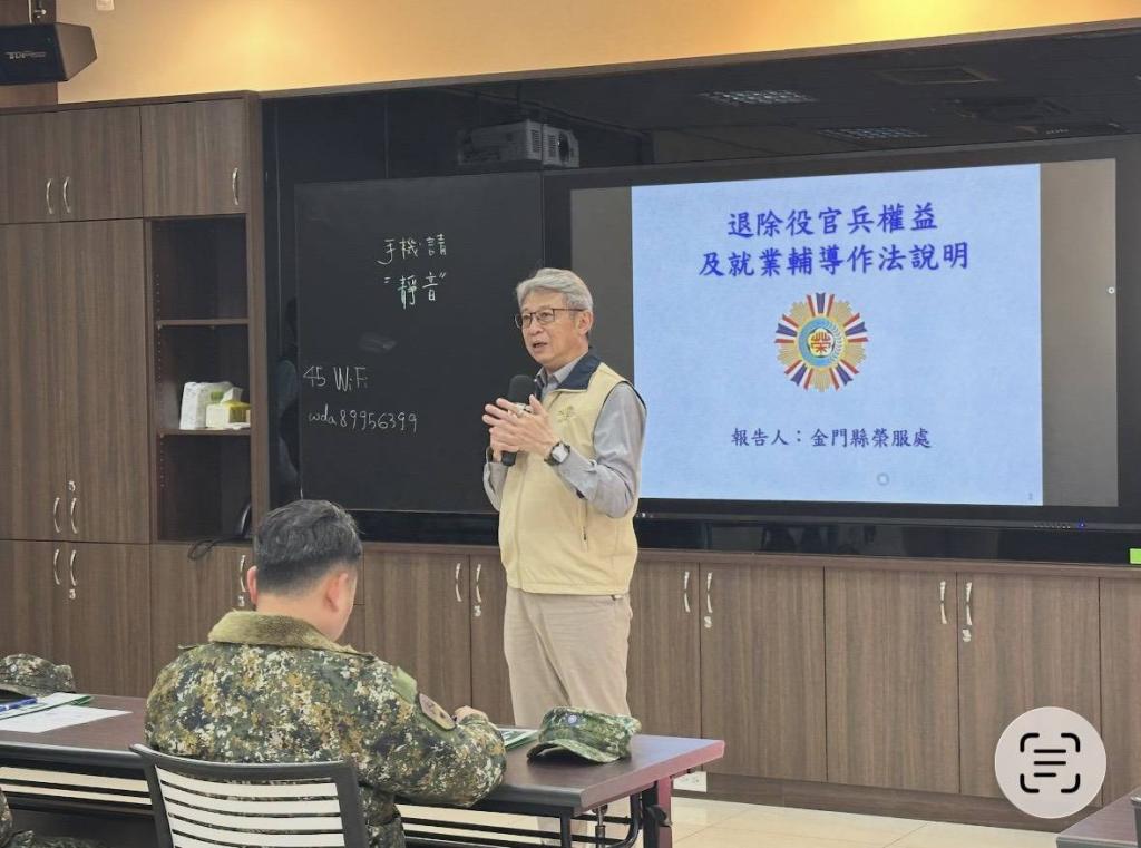 金門縣榮服處劉信義處長表示,退伍是一段新旅程開始,政府設有多項輔導措施,協助退除役官兵順利轉銜社會;更以自身軍旅及退役後經驗,鼓勵大家退伍後可以考慮多元方向,不僅可藉由職業訓練學習專業技能,也可報考國家考試或公營事業,開拓更廣闊職涯道路。