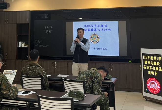 【勁報記者于郁金/金門報導】金門縣榮務處為協助屆退官兵瞭解退伍後相關權益,20日在勞動部勞動力發展署北基宜花金馬分署金門就業中心辦理「115年第1季國軍屆退官兵權益說明會」。