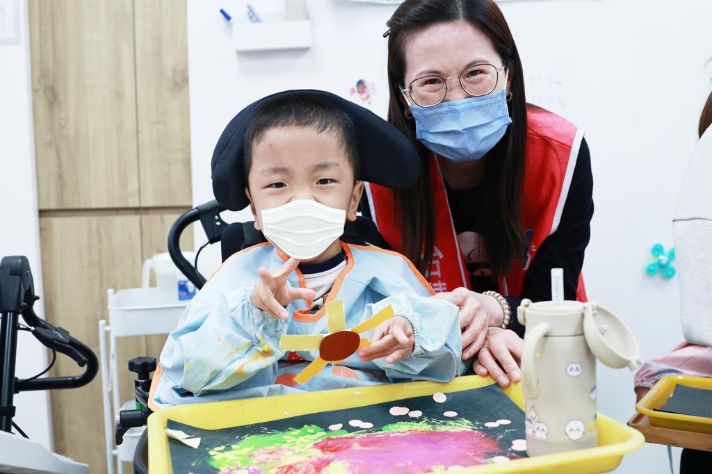▲台積電晶圓二十廠志工陪伴心路慢飛天使上繪畫課。(圖/台積電晶圓二十廠提供)