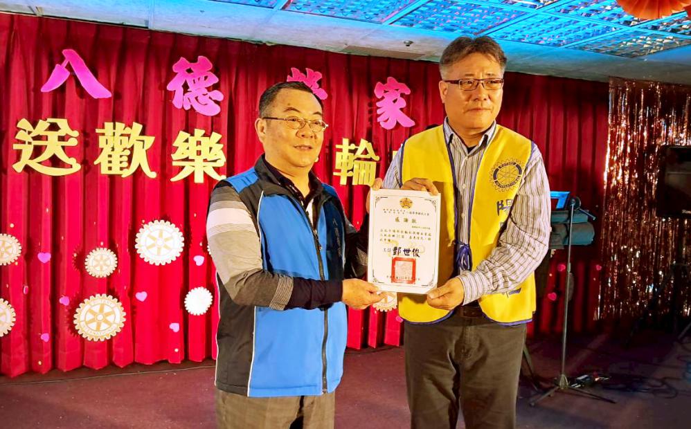 活動中,八德榮家副主任程釋鋒特別代表機構頒發感謝狀,致贈何歡劇團與台北陽明扶輪社,感謝其關懷長者福祉與用心付出。程釋鋒副主任表示,此次活動透過藝文演出與實質物資捐助,不僅豐富住民精神生活,也減輕照護負擔,對提升整體照護品質具有正面助益。