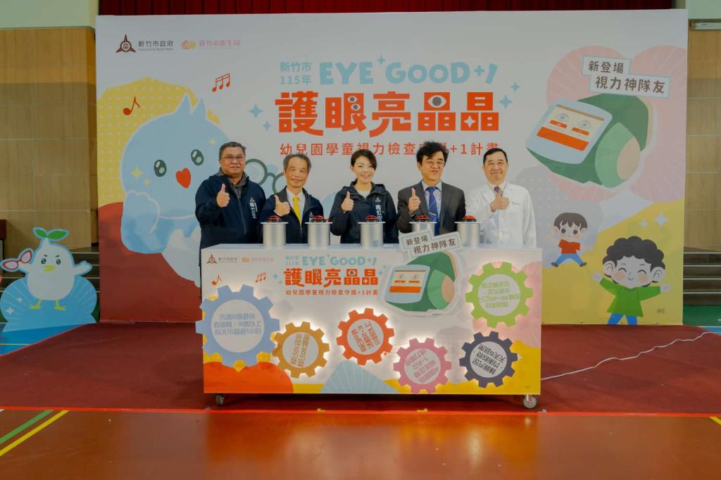 視力健康攸關幼童成長發展,新竹市政府今(25)日在西門國小舉辦「EYE GOOD+1 護眼亮晶晶」幼兒園學童視力檢查守護+1計畫發布會,由市長高虹安宣布計畫正式啟動。高市長指出,此次計畫為全國首創,特別導入醫師與護理師巡迴全市公私立幼兒園,提供專業視力篩檢服務。預計逾萬名學童受惠,落實「早期介入、及時矯正」,守護孩子視力發展黃金期。