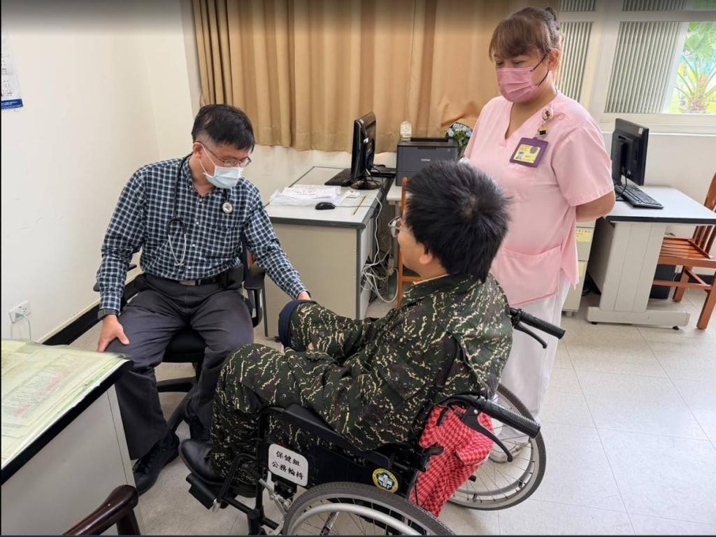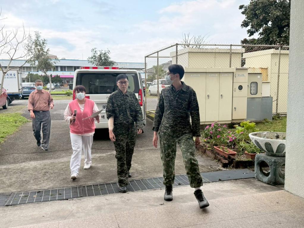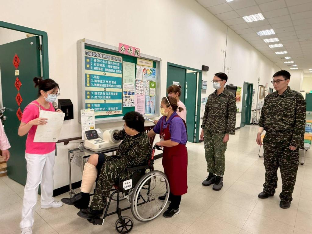 榮家說明,本次演練模擬2名戰況穩定傷兵(分別為右前臂二度燒燙傷及右大腿骨折術後),由國軍花蓮總醫院後送至榮家;演練過程中,首先由醫院與榮家護理人員採「ISBAR」標準化交班機制,確保病情與治療資訊完整銜接;隨後由醫師、護理師、堂長及社工組成跨專業團隊,迅速完成身心評估、用藥評估及整體照護規劃;確認狀況後,由照服員進行轉送與安置,並同步提供環境介紹及心理支持,確保整體收容流程順暢、不中斷。