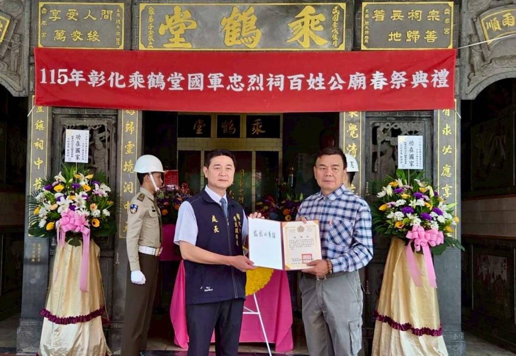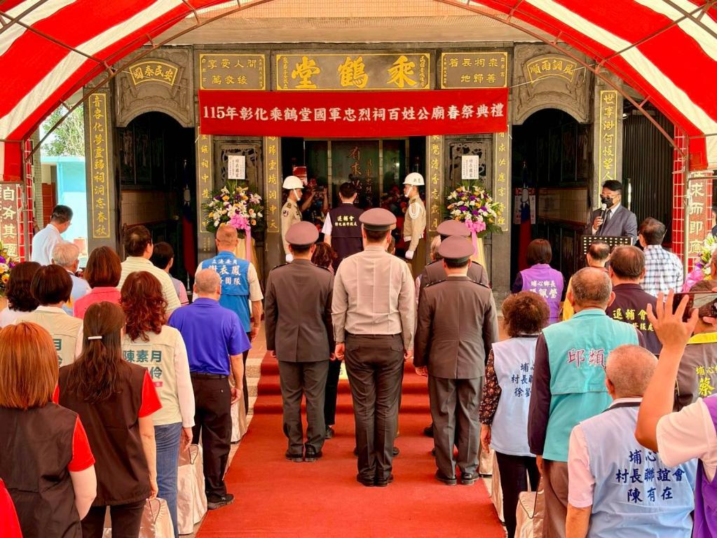 【勁報/彰化報導】為緬懷捍衛國家、守護家園國軍忠烈與義民先賢,彰化縣榮服處於清明節前夕,在彰化埔心乘鶴堂國軍忠烈祠暨百姓公廟舉行115年春祭典禮;典禮由邱文俊處長擔任主祭官,並邀請鄰近會屬機構首長、軍方代表、地方仕紳、宮廟主委及社會各界人士共襄盛舉,以莊嚴肅穆祭儀,向先烈英靈致上最崇高敬意。