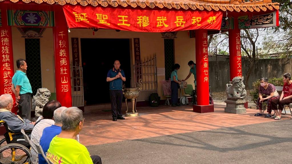 王國能副主任致詞表示,岳武穆王不僅是卓越軍事家,其「精忠報國」故事更是中華文化中忠孝節義最高典範;這份無私奉獻、保家衛國精神,正與本家所有退除役官兵早年投身軍旅、守護臺灣奉獻精神不謀而合;期盼藉由今日紀念活動,不僅讓榮民長輩們齊聚一堂,也勉勵全體職員工傳承這份正向力量,持續為長輩提供最優質照顧與服務。