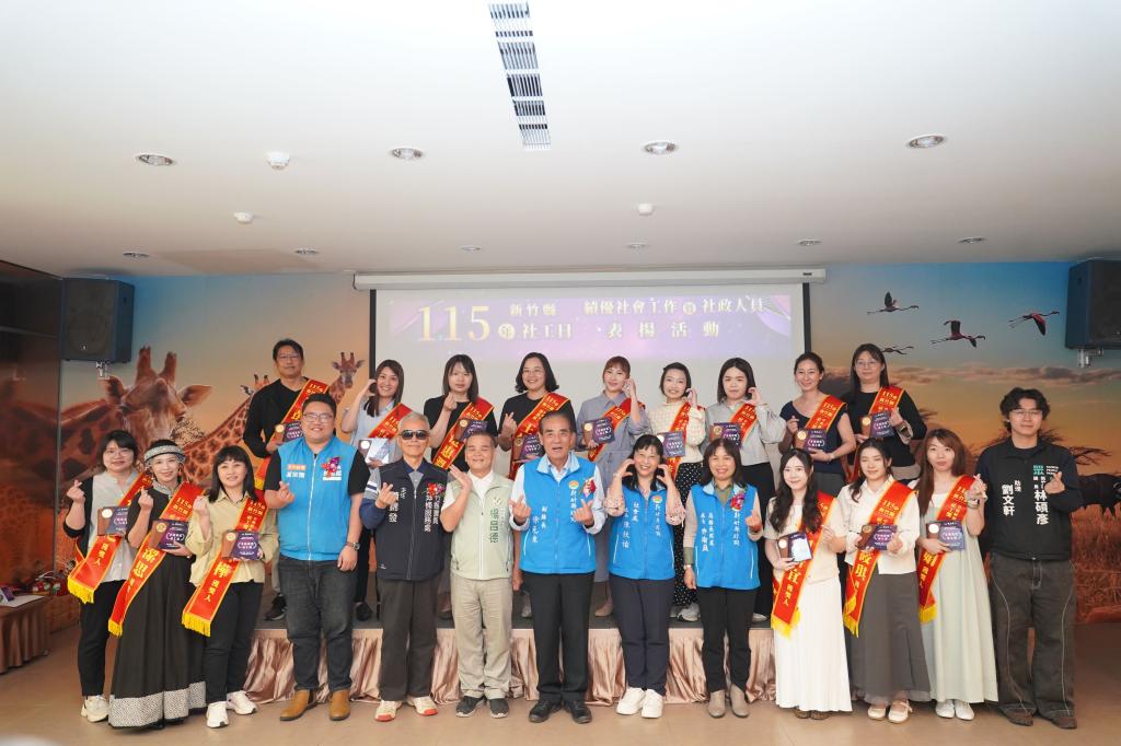 ▲竹縣府115年度績優社會工作暨社政人員表揚典禮合影。(圖/竹縣府提供)