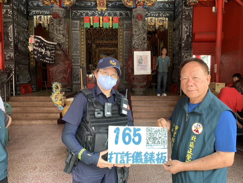 【勁報記者于郁金/臺南報導】社區廟宇是民眾信仰中心,更是能讓人安頓心靈,正覺里巡守隊發動轄內志工及有愛心人士,結合鳳山宮於4月3日假臺南市北區延平鳳山宮舉辦捐血活動,吸引熱情民眾響應,讓社會充滿熱血及溫馨,南警五分局公園所員警與正覺里守望相助隊隊長吳銅吉,特別運用此機會,建立和民眾相互溝通平臺,在捐血之餘,宣導「識詐、防詐」知識,並強化民眾防詐意識。