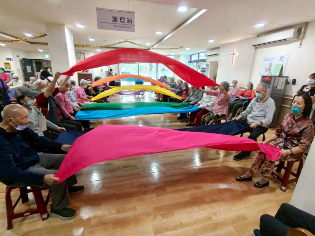 臺南榮家表示,每一次歡笑背後,都有著縝密照顧策略支持;氣球傘高彩度能吸引視覺追視,配合鼓聲節奏與雙手緊握傘邊,同步提供視、聽、觸覺多重感官刺激,有效活化大腦;同時,長輩圍圈操作,建立明確物理邊界,透過指令配合傘面縮放調整肢體,不僅具象化空間變化、強化「空間方向感定位」,更降低日常遊走迷失風險,在歡樂中達成深度神經與肢體復能。