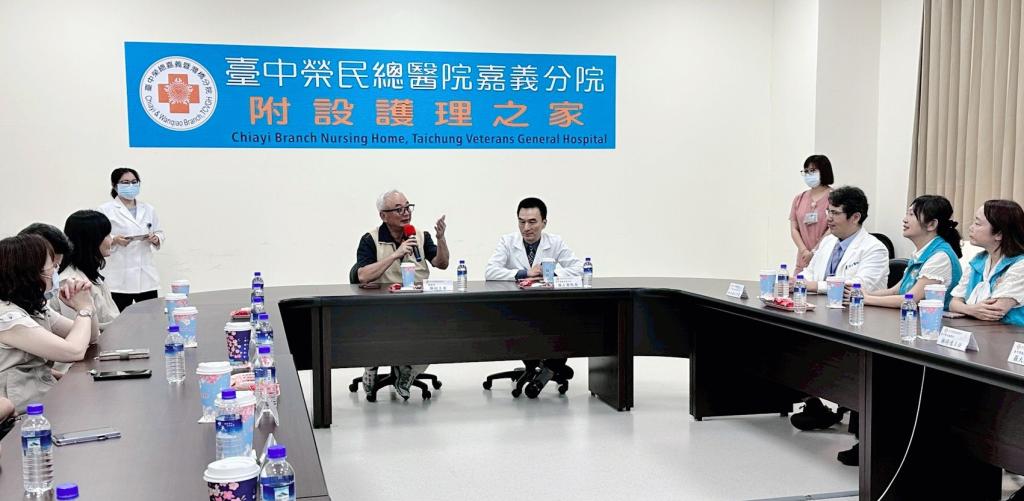 視導行程首先由護理部張蘭英主任,說明目前嘉義榮院照顧榮民(眷)情形,及醫院醫療運作、PAC、仿家屋及居家護理平台等運作狀況,陳進廣副主委肯定臺中榮總嘉義分院落實醫養合一照顧榮民(眷),及針對生活在社區具高風險獨老或雙獨老榮民(眷),醫院與嘉義榮服處、雲林榮服處、白河榮家及雲林榮家合作,組成「鐵三角健康照護體系」合作順暢,給予以高度肯定。