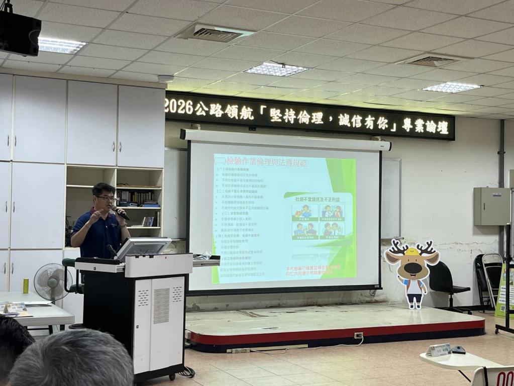 論壇並邀請定期考核優異之廠商代表─桃園市峰羽股份有限公司傳授經營管理與實務經驗,分享如何以誠信精神提升企業競爭力,促進業界標竿學習;並由展理聯合法律事務所林睿群律師講授「從車輛檢驗談受託行使公權力相關法律責任與風險管理」,強化檢驗人員法治觀念與風險控管能力。