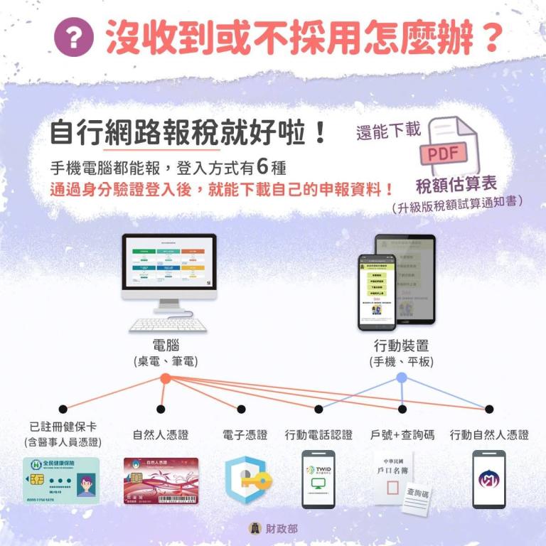 竹北國稅局進一步說明,如未收到稅額試算通知書,可透過綜合所得稅電子申報繳稅服務系統(網址: https://tax.nat.gov.tw )線上版或手機版下載「稅額估算表」檢視估算稅額資料,如無須調整內容,於填報繳(退)稅資料後,即可上傳完成申報;如經檢視欲增修扶養親屬、扣除額資料或新增非屬查調範圍的所得或扣除額資料(如租賃所得、財產交易所得或重購自用住宅稅額等),可透過申報系統進行申報資料之編修及上傳完成。