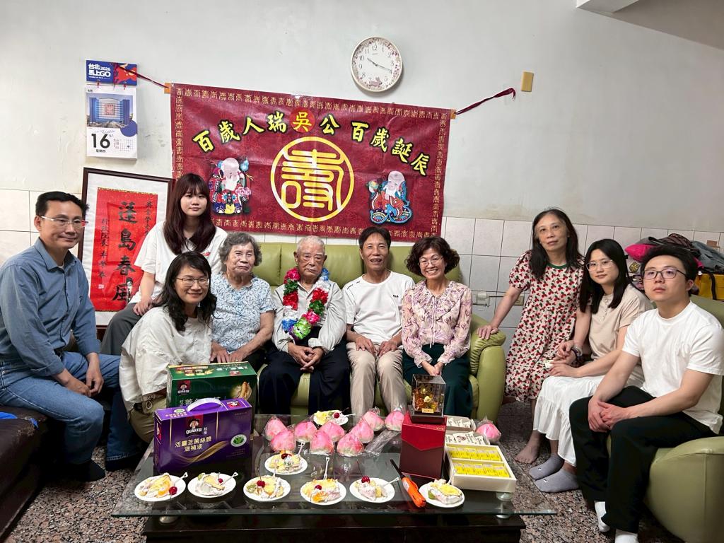 爺爺笑說:「家裡好久沒有這麼熱鬧了」!臉上滿是幸福與滿足神情,還大方分享他的長壽秘訣「知足常樂」,並許下「大家都健康快樂、呷百二」心願。