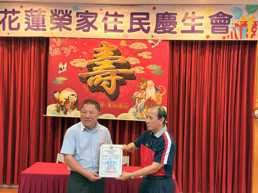 此外,為感謝住民長輩對榮家支持與付出,會中特別頒發感謝狀予松柏堂謝歐輝、長青堂林璧豐2位住民,表彰其熱心捐助榮家,用於改善堂隊環境設施設備,善行義舉,令人敬佩,也為其他住民樹立良好典範。