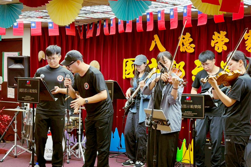 ▲八德榮家舉辦音樂饗宴,邀請國防部示範樂隊蒞家演出。國防部示範樂隊成員專注投入演出,以歌聲與樂音交織動人旋律,帶領長輩沉浸於熟悉樂章中,共度溫馨美好的午後時光。(圖/八德榮家提供)