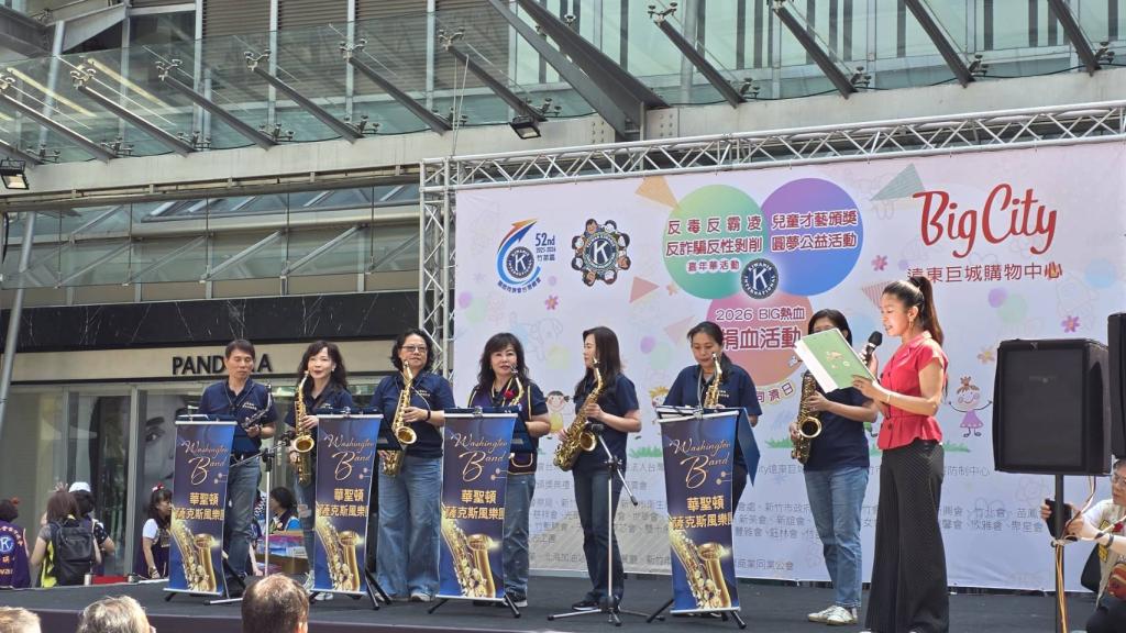 ▲國際同濟會台灣總會竹苗區今(4/19)日在新竹市遠東巨城購物中心廣場盛大舉辦「同濟有愛.BIG 捐血」公益活動。開場安排華盛頓薩克斯風團精彩演出。(圖/國際同濟會台灣總會竹苗區提供)