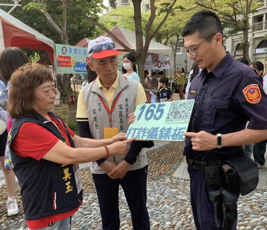 活動中,由華德里巡守隊隊員與員警,向參與者加強「識詐、防詐」宣導,並說明最新詐騙手法「假投資詐騙」、「網路購物陷阱」、「冒充親友詐騙」等案例。