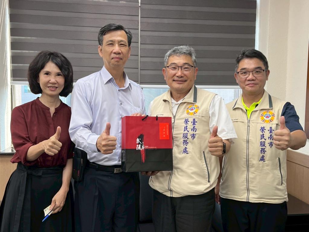 【勁報記者于郁金/臺南報導】因應超高齡社會落實國家「獨居老人一體化服務」政策,臺南市榮服處胡思湘處長,近日拜會中華郵政臺南郵局邱世賢局長、臺灣銀行臺南分行劉永泰經理、臺南財務組張嘉元上校組長;針對獨居榮民關懷、打詐防騙及跨機關資源整合進行交流,未來將結合郵務體系與數位科技,攜手構築更完善社會安全防護網。