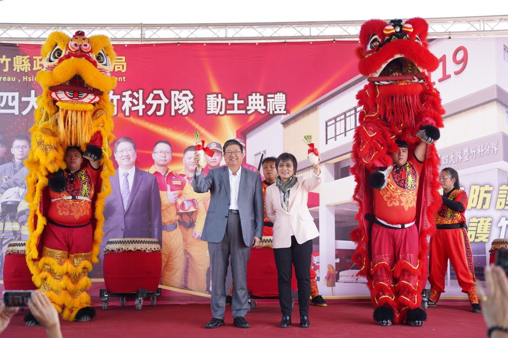 為守護新竹縣寶山鄉親安全並強化科學園區防救災能量,中央與地方攜手投入總經費3億937萬元,於寶山鄉園區段新建竹縣「第四大隊暨竹科分隊」廳舍,今(4/20)日正式舉行開工動土典禮,內政部長劉世芳、新竹縣長楊文科、竹科管理局長胡世民等各界人士共襄盛舉,見證第四大隊的興建,未來將更保障科學園區及周邊居民的安全。