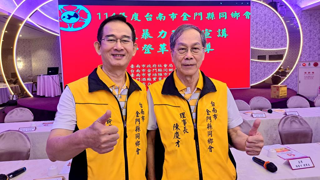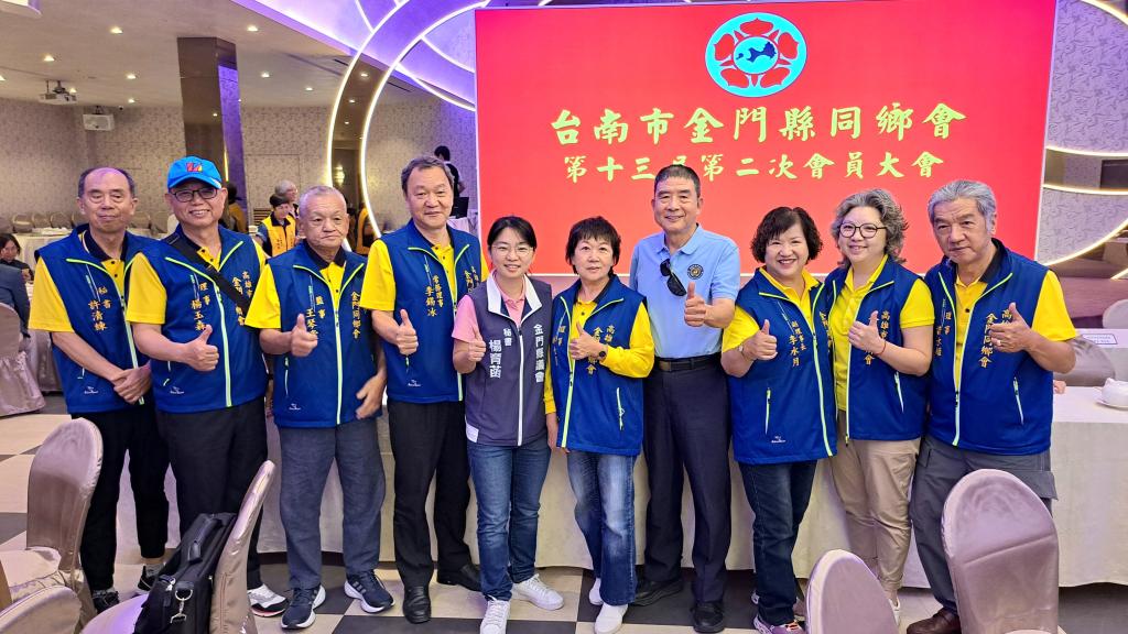 臺南市金門縣同鄉會成立於民國82年7月(81年11月25日創會),立案字號「南市社行字第0000217號」,歷屆理事長包括創會第1、4、5屆董振茂、第2屆吳恒遷、第3屆李金振、第6屆林允生、第7屆林建宇、第8屆王泉尚、第9屆陳慶才、第10、11屆理事長陳瑞華、第12、13屆理事長陳慶才,目前會址「臺南市東區東興路123號」;特別值得一提的是,4月19日歷屆及現任理事長出席與會,包括董振茂、林允生、林建宇、陳慶才、陳瑞華,更看出金門人團結凝聚力。