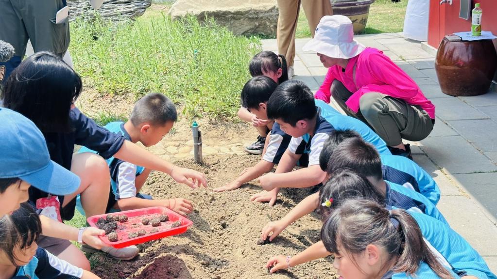 ▲林保署新竹分署盛大舉辦「竹苗珍稀植物復育的風土綻放」成果展示交流活動,小朋友播下受脅植物種子球,象徵播下希望。(圖/林保署新竹分署提供)