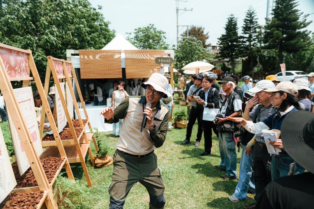 ▲林保署新竹分署盛大舉辦「竹苗珍稀植物復育的風土綻放」成果展示交流活動,林業試驗所助理研究員陳建帆導覽竹苗淺山受脅植物異地復育成果。(圖/林保署新竹分署提供)