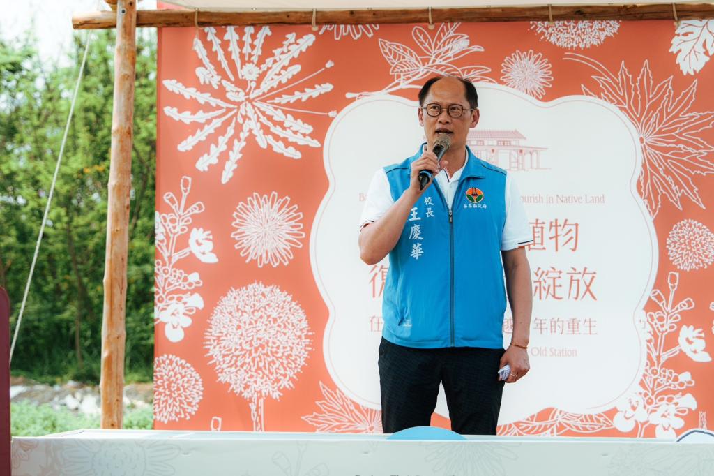 ▲林保署新竹分署盛大舉辦「竹苗珍稀植物復育的風土綻放」成果展示交流活動,苗栗縣通霄鎮圳頭國民小學王慶華校長致詞。(圖/林保署新竹分署提供)