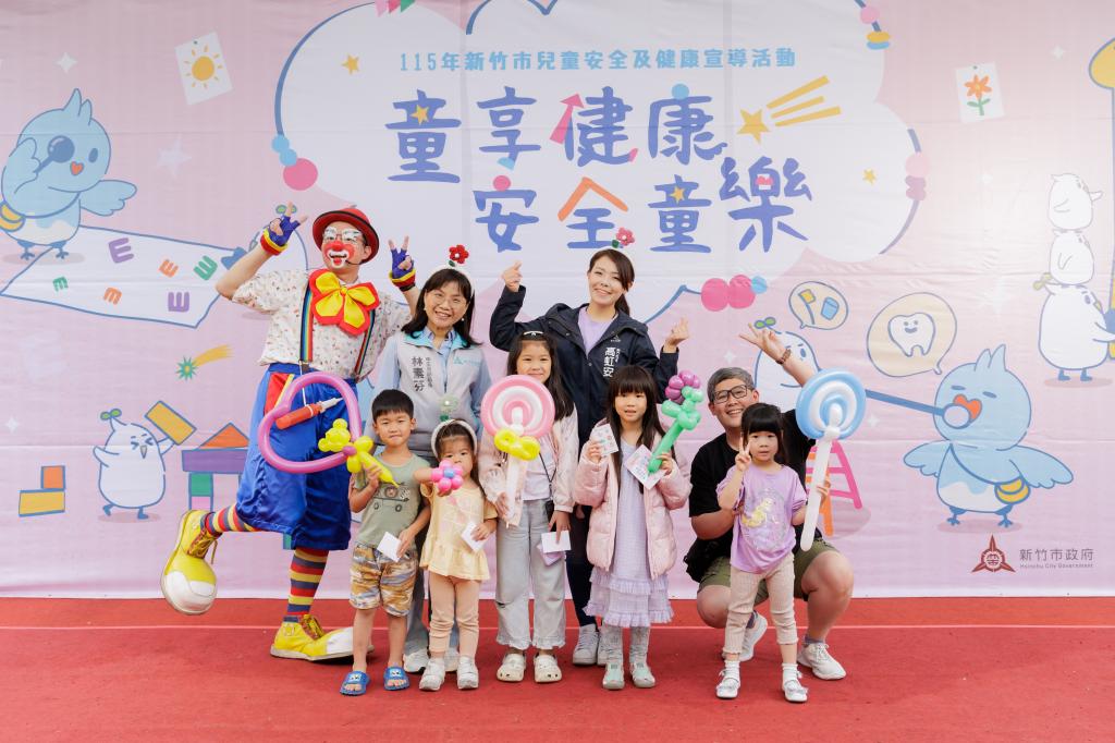 大手牽小手,守護成長趣!新竹市政府推動115年新竹市「童享健康.安全童樂」系列活動,繼首場於動物園廣受好評後,第二場今(4/25)日於北大公園熱鬧登場。活動由小丑彥彥帶來活潑逗趣的氣球表演揭開序幕,市長高虹安到場與市民朋友同樂,同時,高市長並親自送上康乃馨給親子提前祝福市民母親節快樂,現場互動熱絡且笑聲不斷,營造溫馨歡樂的週末時光,也讓安全教育在潛移默化中融入日常生活。