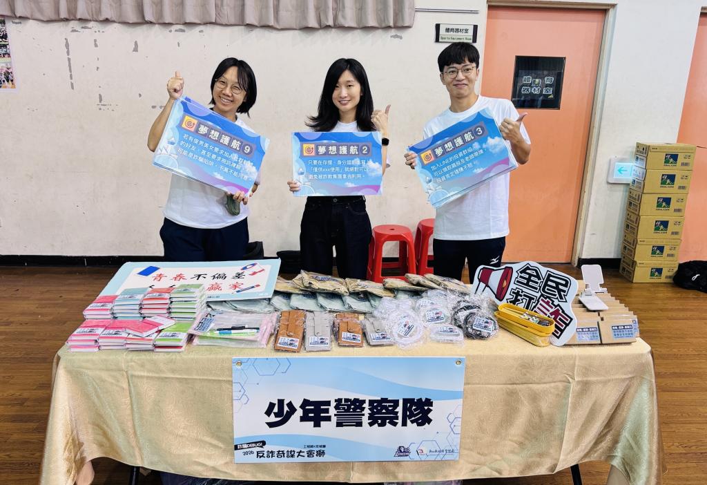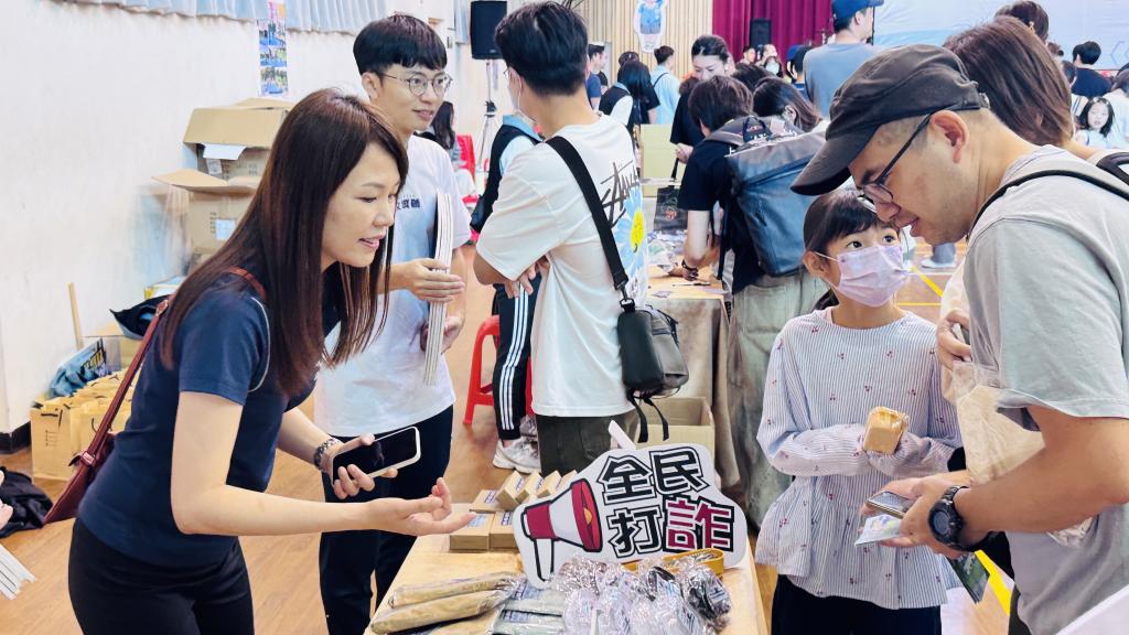 ▲竹縣警局打破傳統教條式宣導,盛大舉辦「詐騙 Debug!反詐奇謀大會獅」活動,少年警察隊於現揚設攤位宣導各項防詐奇招。圖/竹縣警局提供)