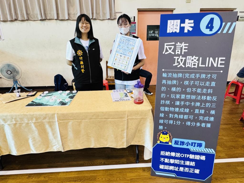 ▲竹縣警局打破傳統教條式宣導,盛大舉辦「詐騙 Debug!反詐奇謀大會獅」活動,刑事警察隊於現揚設攤位透過九宮格闖關遊戲宣導各項防詐奇招。圖/竹縣警局提供)