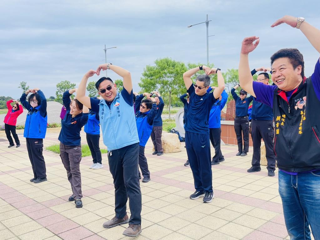 活動開始,各分隊成員搭乘接駁車齊聚金門大橋烈嶼端,並於現場進行暖身帶動跳結合「遠離火災並不難,人離火熄是王道」、「安裝住警器,安全有保庇」「抗震防災三步驟,趴下掩護穩住」等防火宣導標語互動,在熱鬧歡樂氣氛中揭開序幕。