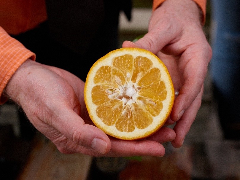 ▲南庄橙果實剖面特寫,其厚皮、豐富果膠與獨特質地特性,為製作高品質果醬的重要條件。(圖/林保署新竹分署提供)