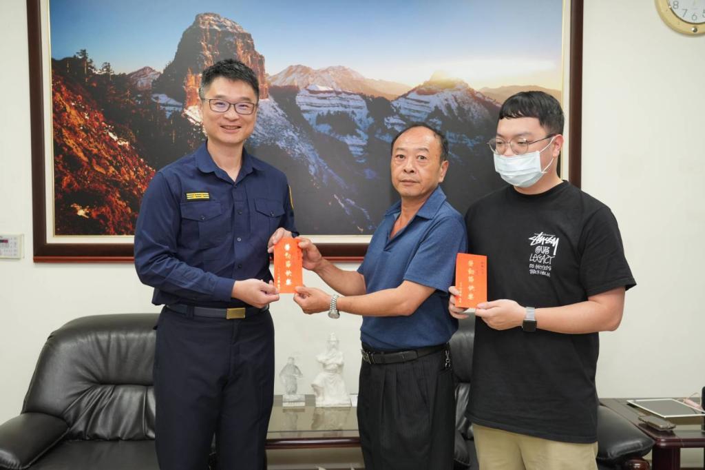 ▲五一勞動節前夕,竹縣警察局舉辦「驚喜式」慰勉活動,局長送上親筆簽名小紅包慰勉幕後英雄。(圖/竹縣警察局提供)