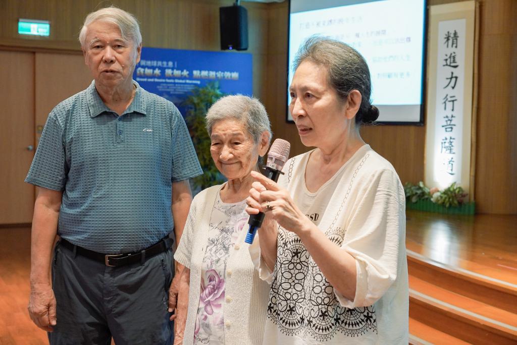 圖說:朱靜子(右)表示,在尊重自主自立與支援照顧間確實兩難,因為安全第一,要放手讓她自立也必須要漸進式。(中)為她照顧的母親張玉惠奶奶,今年已97歲。 (左)為讀書會導讀凌健。