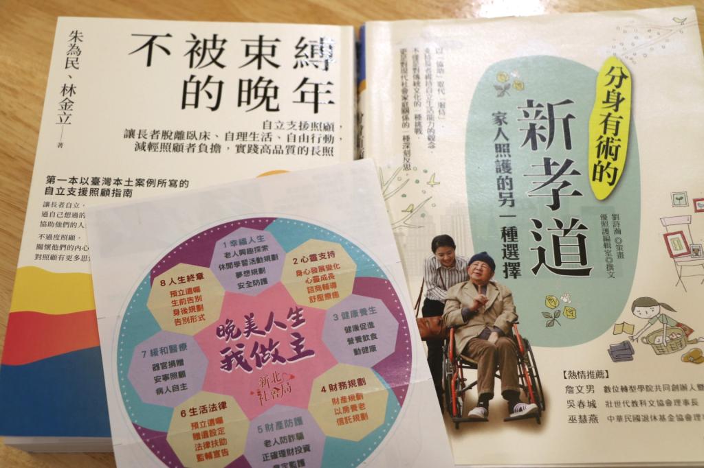 圖說:新北「晚美人生我做主」系列講座中,銀戰議題讀書會所閱讀討論的兩本書為《不被束縛的晚年》及《分身有術的新孝道:家人照護的另一種選擇》。