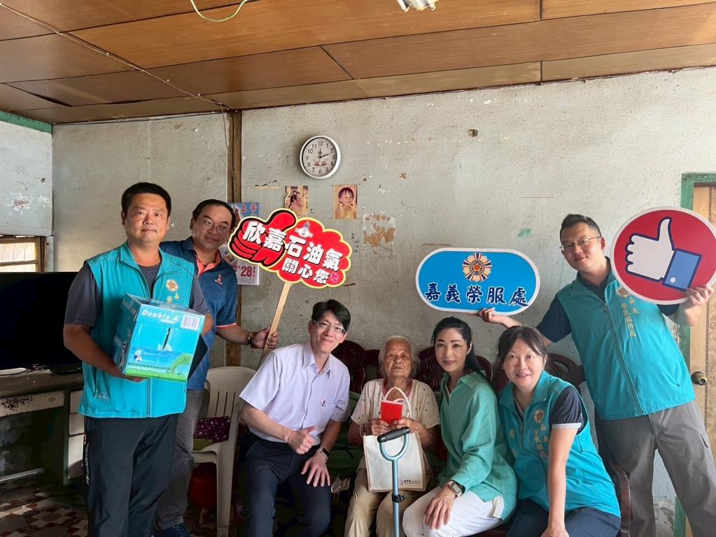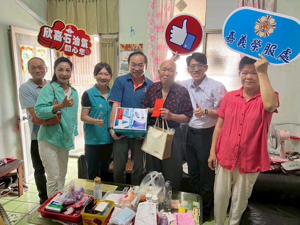 【勁報記者于郁金/嘉義報導】為落實對退除役官兵服務照顧,運用資源整合擴大服務能量,2日嘉義榮民服務處處長許淑菁攜手欣嘉石油氣公司樊立平副總經理、萬事達開發行銷公司總經理李奇璉,一同關懷榮民眷及義務傷殘退役官兵,並致贈慰問金及營養品等物資,表達對榮民眷關懷之意。