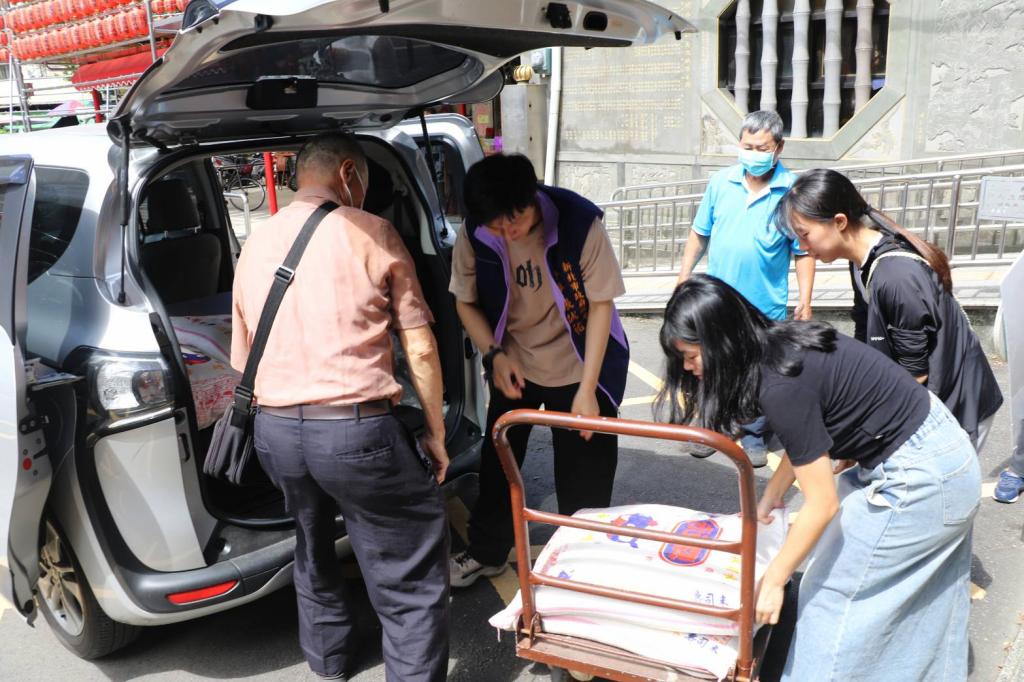 圖說:土城社福中心社工到五穀先帝廟搬運白米