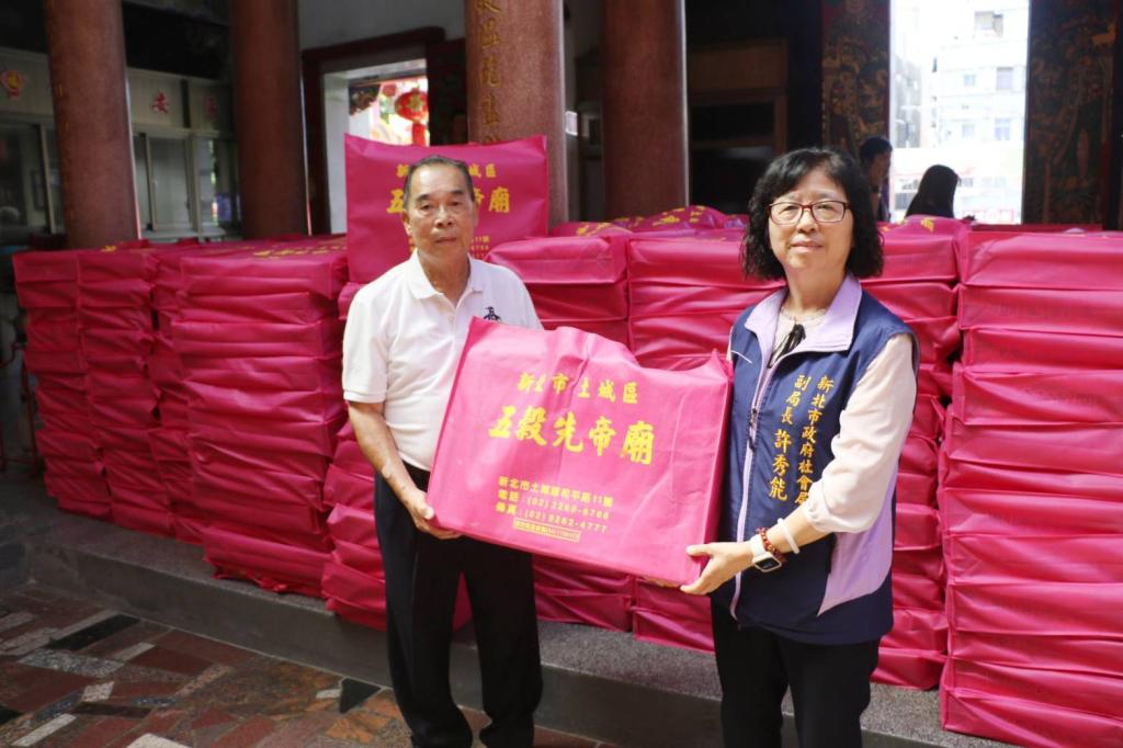 社會局副局長許秀能表示,五穀先帝廟從109年起,便將在中元普渡期間信眾贊普的各項民生物資,包含油、麵、罐頭、餅乾、食品及白米等捐贈給新北市好日子愛心大平台和實物銀行,迄今已累計折合市值151萬多元。這些民生物資,均透過社福中心的服務管道,轉送給有需求的弱勢家庭和社福機構。