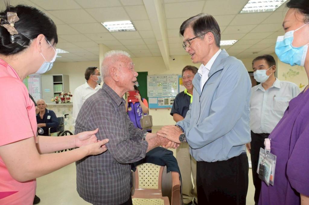 【勁報記者于郁金/花蓮報導】退輔會主任委員嚴德發於10月2日特地前往花蓮榮家,探視此次花蓮縣光復鄉洪水受災退伍榮民江添昌,表達關懷與慰問之意;隨同前來輔導會服照處曹東發處長、就養處陳相寶處長、事業處楊長政處長、簡任視察謝浚豪,及欣欣水泥公司董事長郭先琛。